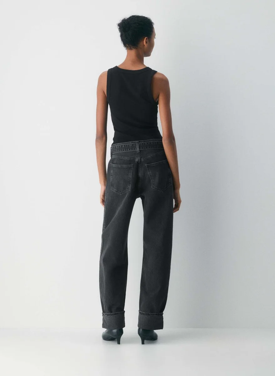 Décontracté mais soignéCe jean taille moyenne présente une coupe fuselée. Il est confectionné en coton 100 % régénératif. Ce modèle est disponible en indigo foncé avec délavage, marbrure et moustaches.