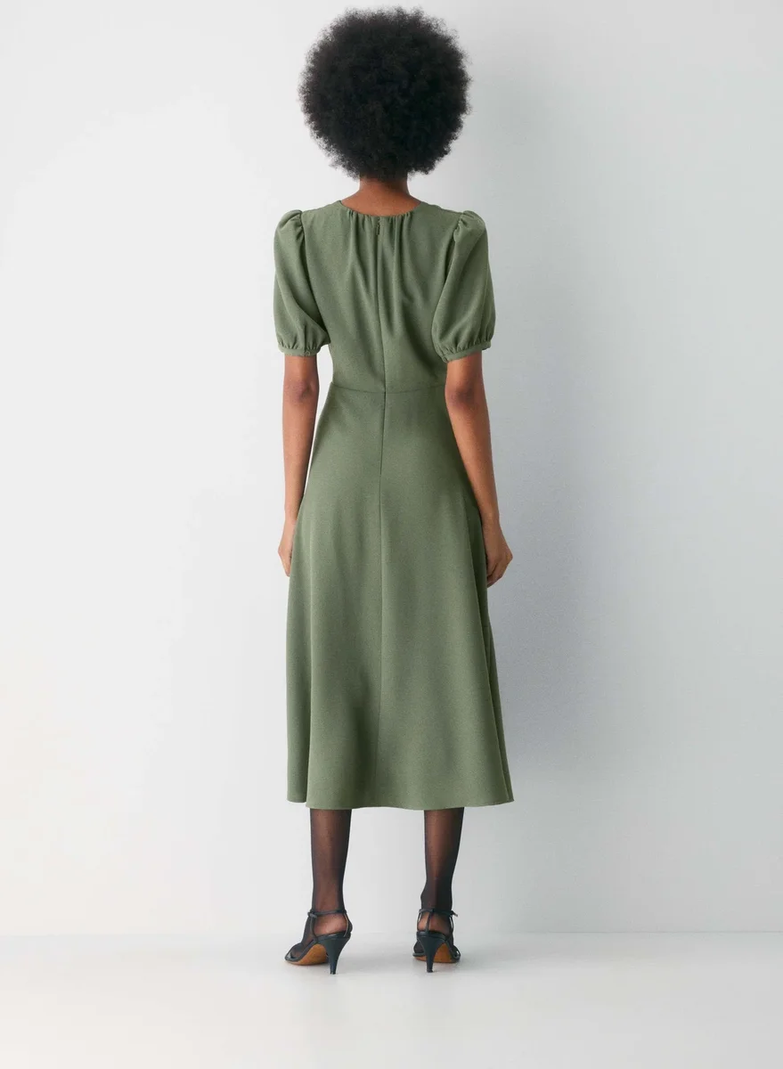 Robe longue ajustée et évasée en sergé