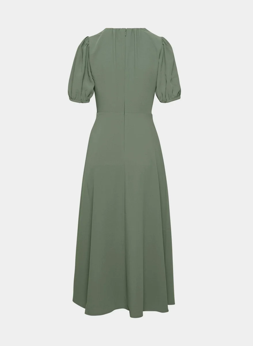Cette robe longue à col en V présente une silhouette ajustée et évasée. Elle est confectionnée en (Re)twill™, un tissu léger et aérien qui tombe magnifiquement bien. Elle est composée à 100 % de polyester recyclé.